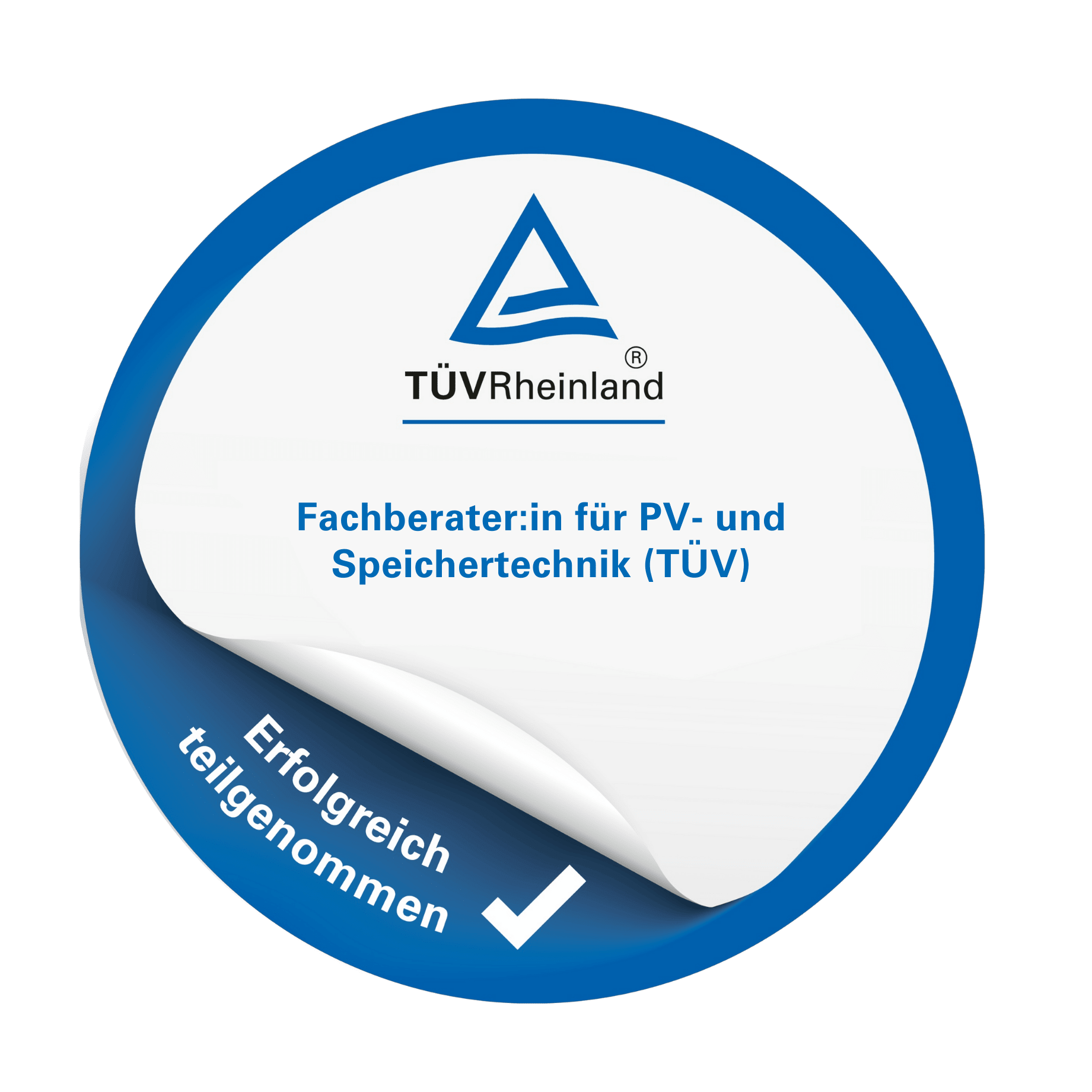 Unsere Beratungskompetenz ist durch eine unabhängige TÜV-Qualifikation untermauert: Die Becker Consulting GmbH ist zertifizierter Fachberater:in für PV- und Speichertechnik (TÜV).